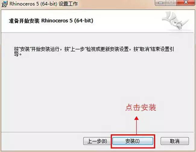 准备开始安装Rhino5.0,确认无误后,点击“安装”。 如图七。