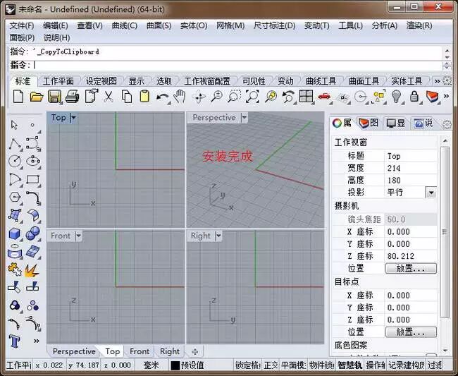 犀牛Rhino5.0中文64位破解版安装完成 如图十三。
