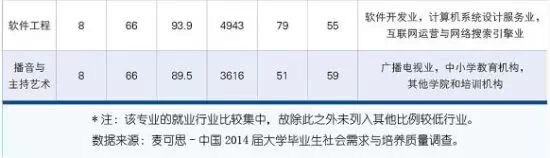 2014届本科生就业满意度较高的前十位专业就业状况(2)