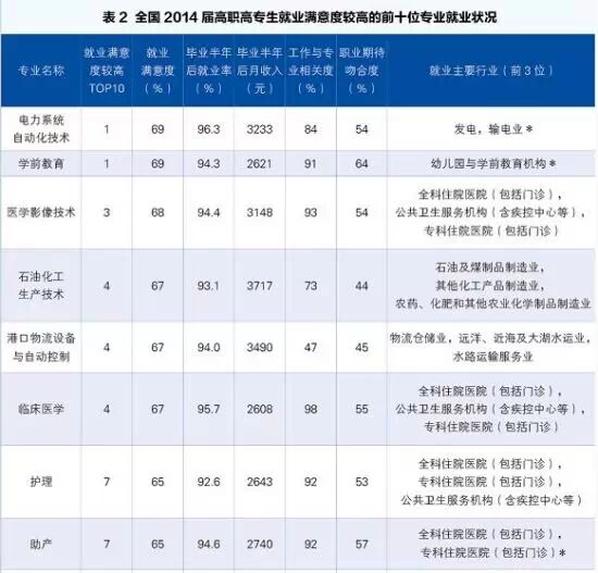 “电力系统自动化技术”与“学前教育”是高职高专毕业生就业满意度最高的专业;
