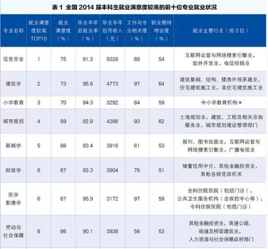 “信息安全”是本科毕业生就业满意度最高的专业;