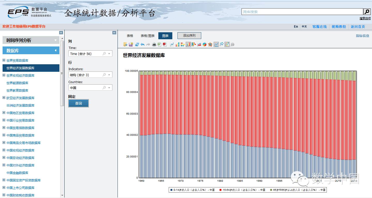 (1960-2014,使用EPS数据库图表功能堆积柱形图绘制)