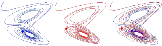 这个例子是什么意思呢?设想现实中我们用仪器测量x,y,z。任何仪器都是有误差的。那么在这个例子中,0.1的误差就会导致预测结果的大相径庭。0.1只是我随意设定的一个小值,附录里有这个方程和绘制曲线的matlab程序,你有兴趣的话可以亲自动手验证——从诸如(4.9, 19.5, -10)等等的微小偏移点出发,在14.45秒的时候和蓝色圆点的距离,比起始点的偏差大得多。