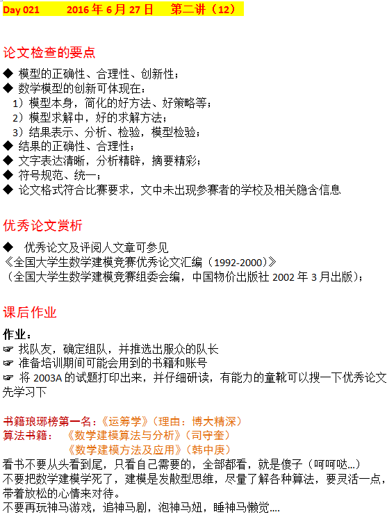 辰卓+QQ:249800815+16年6月27日+学习心得:讲解论文检查的要点,优秀论文赏析,以及在比赛中需要注意的事项,最后布置作业。