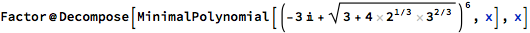 确定 Subscript[x, 1]、Subscript[y, 1]、Subscript[x, 2] 和 Subscript[r, 3] 的方程是12次的!这些方程可以通过因式分解降为具有不尽根系数的六次方程,但专家 Noam Elkies 认为这是不可求解的. 然而当次数为6、8、9、……或任何复合数(或称非质数)时,有时候会比较幸运.