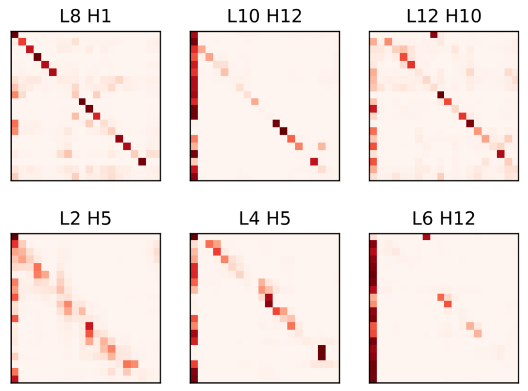 下图是对BERT-Base Attention分布的可视化。对于一个随机选择的句子,我们可视化来自不同Layer的Head的Attention分布。可以看到,底层的Attention分布类似于顶层的Attention分布。这一事实表明在某种程度上,它们的功能是相似的。