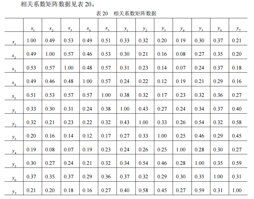 已知相关系数矩阵见表36,试对两组变量之间的相关性进行典型相关分析。