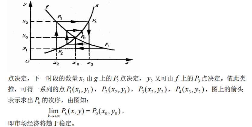 在自由竞争的社会中,很多领域会出现循环波动的现象。在经济领域中,可以从自 由集市上某种商品的价格变化看到如下现象:在某一时期,商品的上市量大于需求,引 起价格下跌,生产者觉得该商品无利可图,转而经营其它商品;一段时间之后,随着产 量的下降,带来的供不应求又会导致价格上升,又有很多生产商会进行该商品的生产; 随之而来的,又会出现商品过剩,价格下降。在没有外界干扰的情况下,这种现象将会反复出现。 如何从数学的角度来描述上述现象呢?