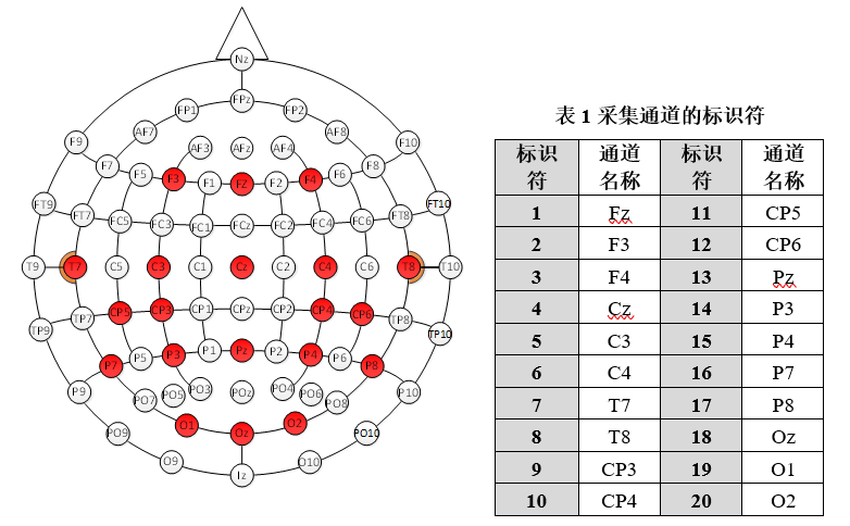 上述过程,得到特定受试者的12个子表的12个通道组合,将所有组合合成一维数组,计算1-20通道标识符出现的次数,若出现次数>10,则启用此通道,最后得到筛选出的个人最优通道组合。" q! r) I( E) ~