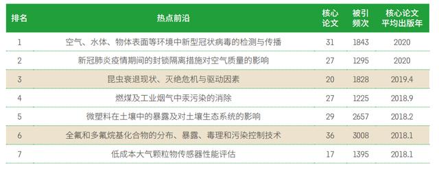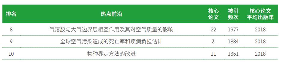 Top10热点前沿主要分布在生态科学和环境科学两个子领域,全球性的生态环境问题及新冠肺炎疫情相关的生态环境问题是主要关注点。