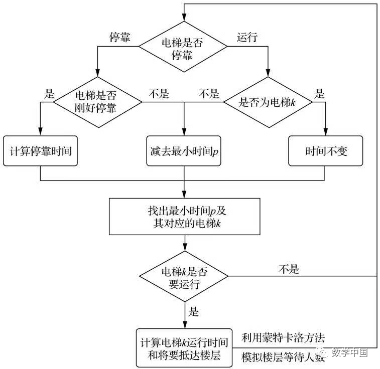 由于电梯在上下行的过程中存在两种状态:停靠或运行,所以以电梯改变状态为循环依据.如果某电梯的状态即将发生改变,则一次循环结束.