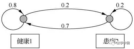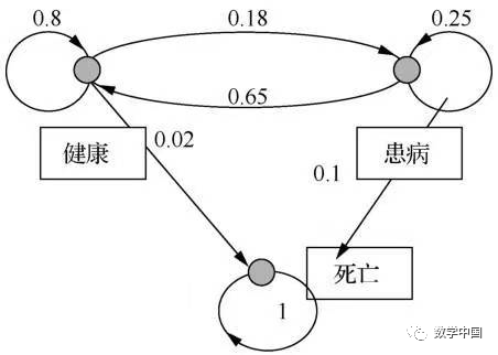 由如下转移公式即可求得n+1个时刻,该人在健康、患病或者死亡状态的概率.