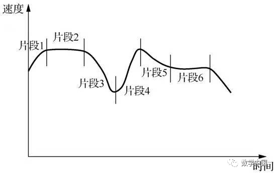 速度变化切割是根据速度的变化情况进行切割.根据时刻-速度图像,以及加速时段、减速时段和匀速时段这三大类情况进行切割.例如,重型汽车加速到顶点的时段记为片段1,随后匀速行驶一段时间记为片段2,之后一直减速的时段记为片段3,如此切割下去,如图2.8所示.