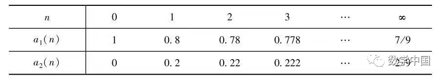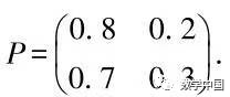 事实上,由前述一般例子,a=0.2,b=0.7,从而取状态0的极限概率为