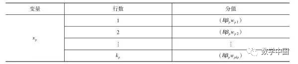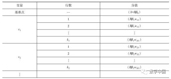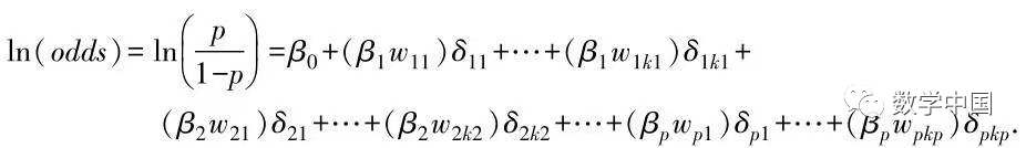 其中,wij是第j行第i个变量的证据权重;δij是二元变量,表示变量i是否取第j个值.公式可以重新写为