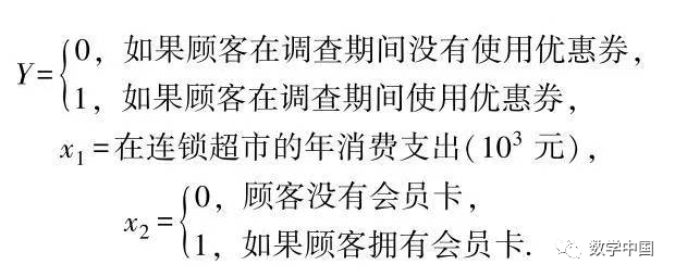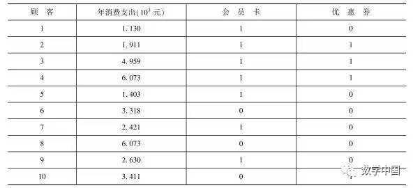 思路分析 研究人员认为,顾客是否使用优惠券会与顾客在这家连锁超市的年消费支出和顾客是否拥有会员卡有关.顾客的年消费支出可以从积分卡上获得;如果顾客拥有会员卡则记为1,否则记为0.