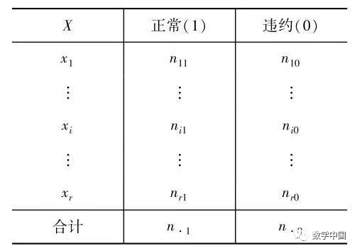 模型建立 表2.9所示是共分为r类的名义变量x和被分为正常和违约两类的违约变量的双向频数表.