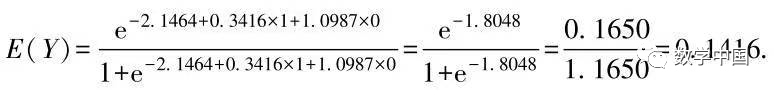 对于这一类顾客群体,他们使用优惠券的概率约为0.14.同样地,可以估计年消费支出为1 000元和拥有会员卡的顾客使用优惠券的概率,为此我们将x1=1,x2=1代入逻辑回归方程,得到