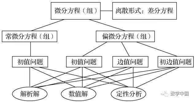 微分方程一般根据自变量是单个或多个分为常微分方程和偏微分方程.未知函数的导数阶数一般不会超过二阶.由未知函数的个数是单个或是多个分别称为方程或方程组.基础的偏微分方程根据其性质分为椭圆方程、抛物方程和双曲方程,它们对应的物理方程分别是位势、热传导和波动方程,反映了自然界能量、热扩散和波动的物理现象.实际中,方程描述的规律已远远超过简单的物理现象.