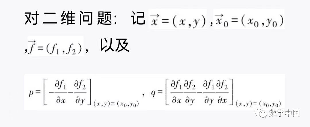 对一维问题:如果右端函数f(x)足够光滑,那么当f′(x0)>0时,x=x0不稳定,当f′(x0)<0时,x=x0稳定.