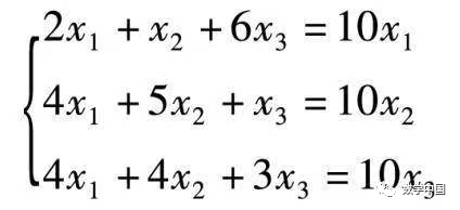 分析:这是一个小型的经济上的投入产出模型。在一个国家或区域的经济系统中,各部门(或企业)既有消耗又有生产,或者说既有“投入”又有“产出”,生产的产品供给各部门和系统外