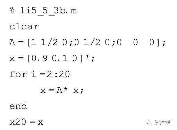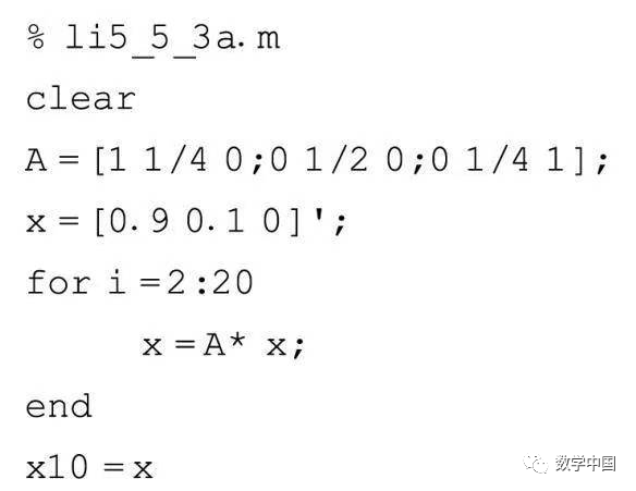 可以求得A对应的3个特征值为1,1,0.5,对应特征向量(1,0,0)′,(0,0,1)′,(-0.4082,0.8165,-0.4082)′。由于三个特征向量线性无关,从而A可相似对角化,即P-1AP=T。于是:An=PTnP-1
