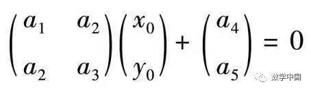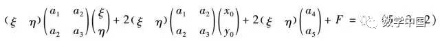 其中,F=a1x0+2a2x0y0+a3y0+2a4x0+2a5y0+1。要简化消去一次项,只需选择x0,y0使上述方程含ξ,η的项为零,故令x0,y0满足方程组