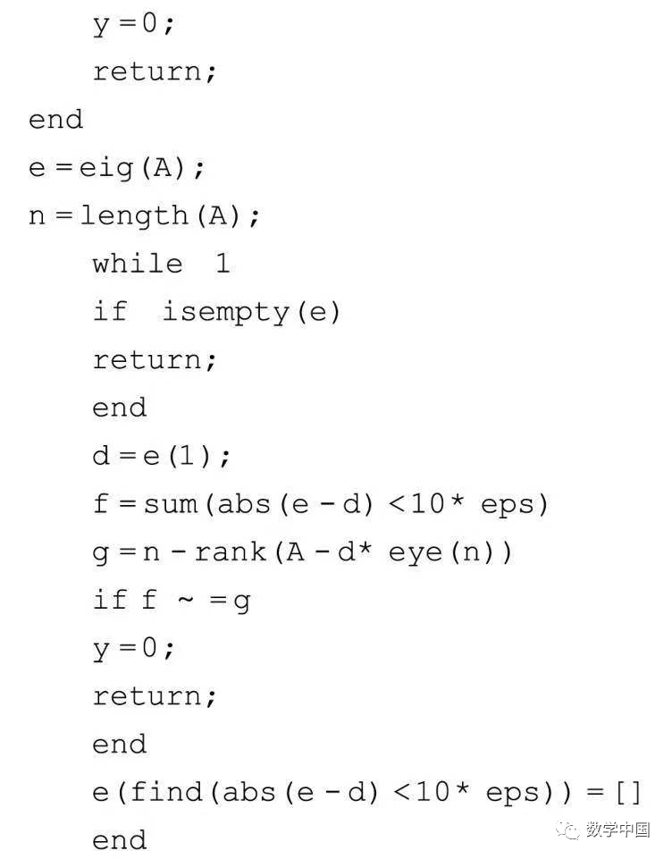 下述函数用来判断矩阵是否可对角化,若可对角化返回1,否则返回0。