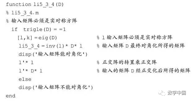 例:实对称矩阵的对角化,输入D=[0 1 1-1;1 0-1 1;1-1 0 1;-11 1 0]然后运行以下li5_3_4.m函数程序。